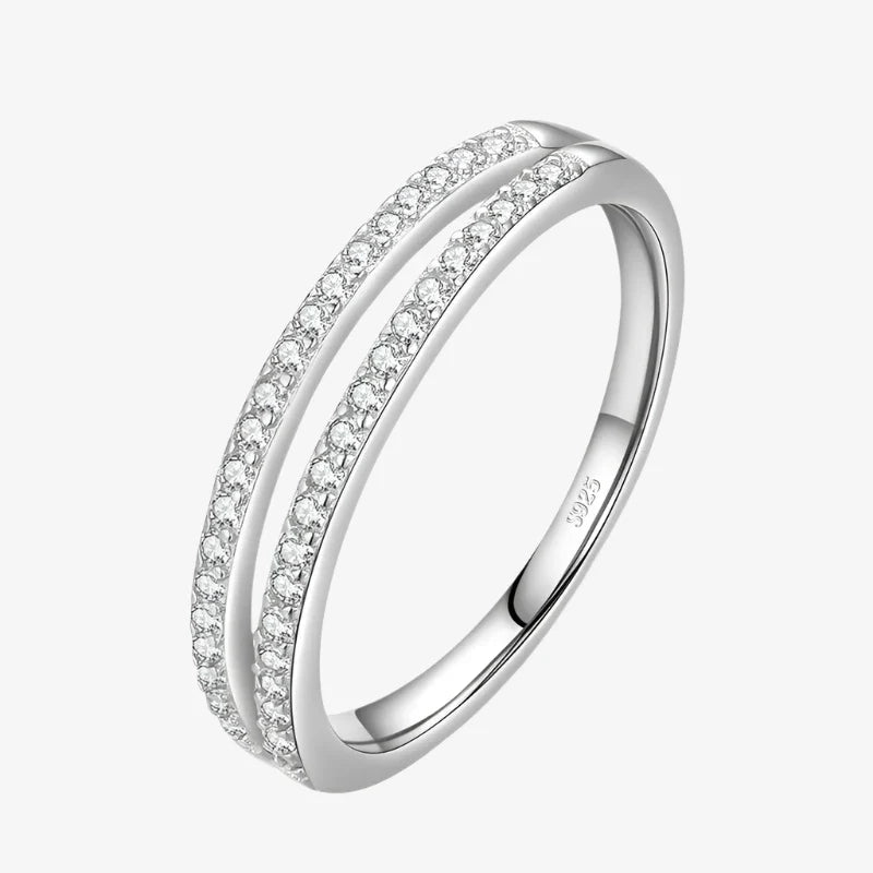 Discover the captivating allure of the Brilliance Divide Ring, a stunning piece that features a single row that elegantly divides into two at the top. Both bands are adorned with sparkling pavé stones, creating a striking visual effect that embodies sophistication. This ring was a recent launch and has quickly become a sensation on our social media, captivating hearts and elevating styles. Perfect for making a statement, it’s an essential addition to any jewellery collection.