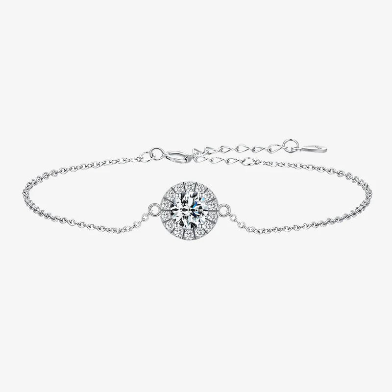 The Brilliant Stone Bracelet is a stunning statement piece, designed to capture attention with its striking elegance. Featuring a captivating round stone at the centre, surrounded by a halo of sparkling diamonds, this bracelet exudes sophistication and luxury. Crafted to perfection, it effortlessly adds a touch of glamour to any outfit, making it an essential accessory for both casual and formal occasions.