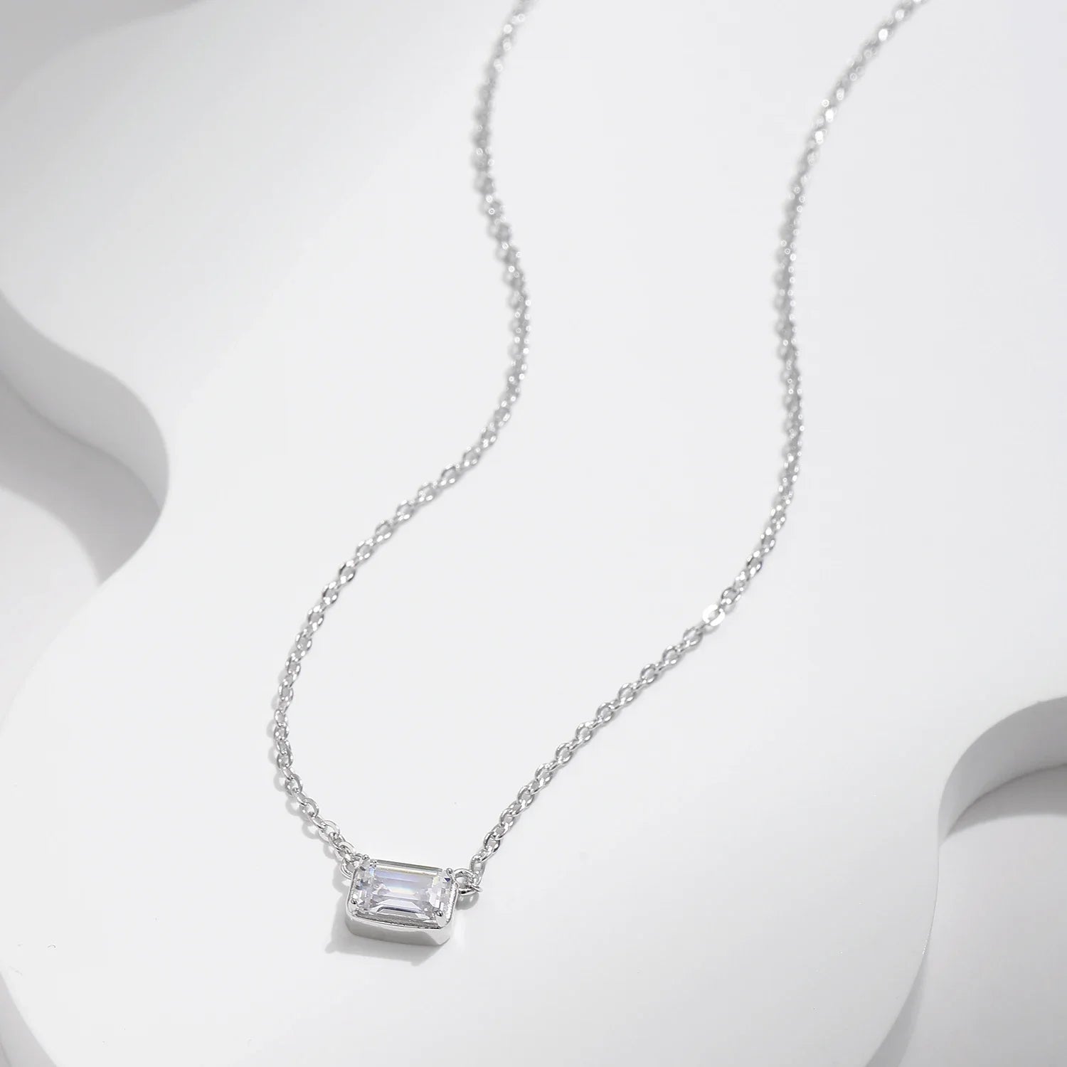 Capture the allure of timeless elegance with our Edge Radiance Necklace. Crafted from lustrous sterling silver, this captivating piece features a brilliant rectangular pendant that radiates with vibrant emerald hues. The striking design adds a touch of sophistication to any ensemble, making it a perfect statement piece for both casual and formal occasions. Embrace the beauty of this enchanting necklace and let it illuminate your style with every wear.