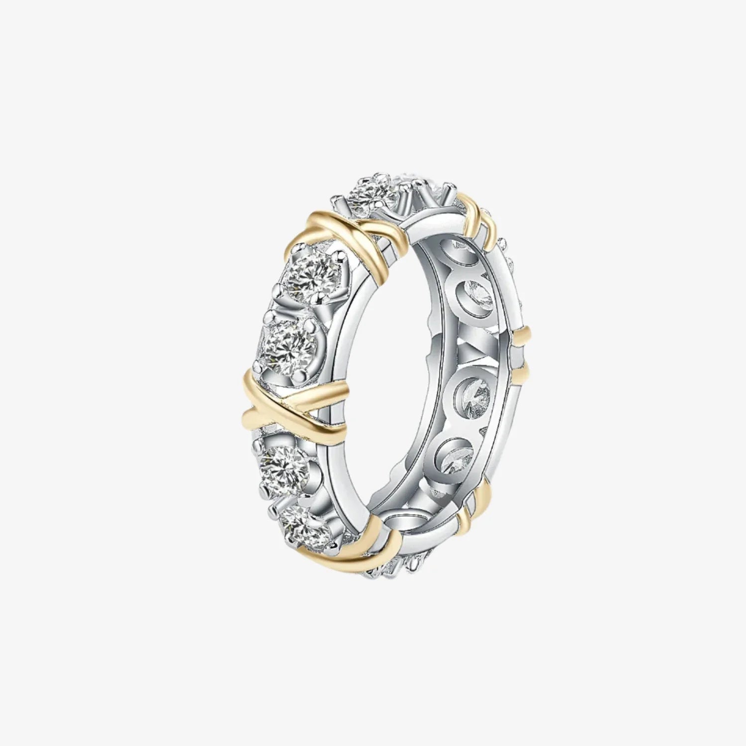 Discover the captivating elegance of our Eternal Radiance Ring, a stunning piece adorned with shimmering gemstones along its band, complemented by exquisite infinity symbols elegantly integrated into the design. Crafted in luxurious gold, this ring embodies the essence of eternal beauty and infinite love. Its radiant craftsmanship ensures it is a perfect statement for any occasion, inviting you to celebrate life's most cherished moments. Embrace the allure of timeless design, for true luxury knows no bounds.