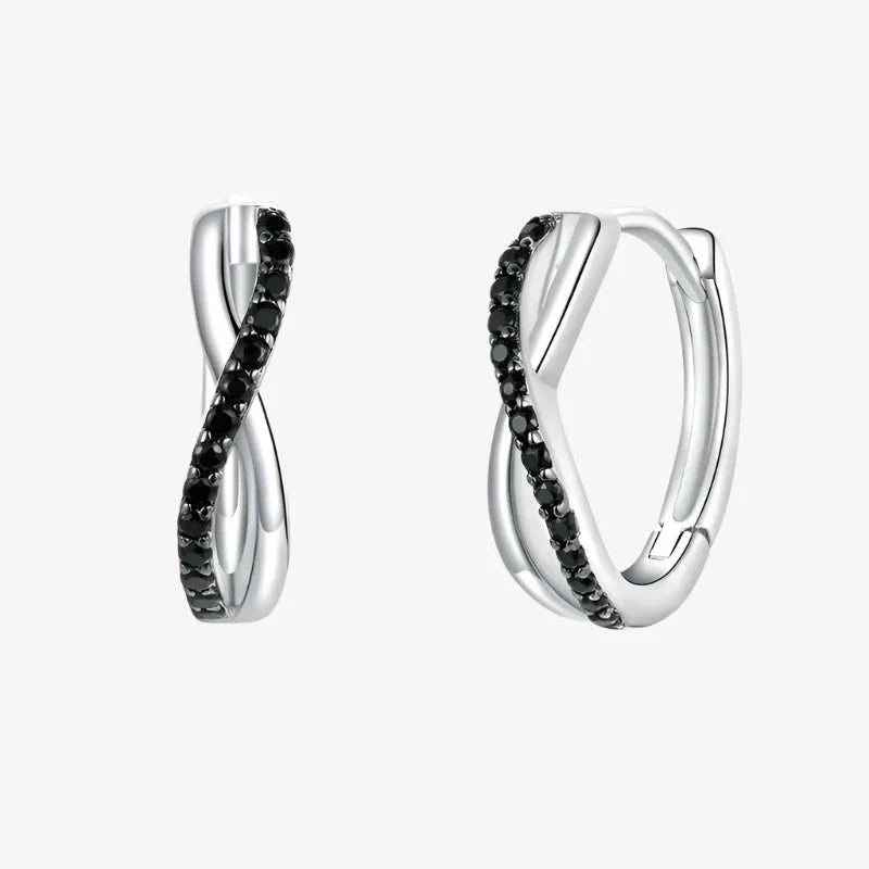 Introducing the Midnight Infinity Hoop Earrings, a striking design encrusted with sleek black stones. These hoops feature an exquisite layout that adds depth and sophistication to any look. Perfect for making a bold yet elegant statement, their timeless allure makes them a standout piece in any jewellery collection, ideal for those who seek a touch of mystery and glamour.