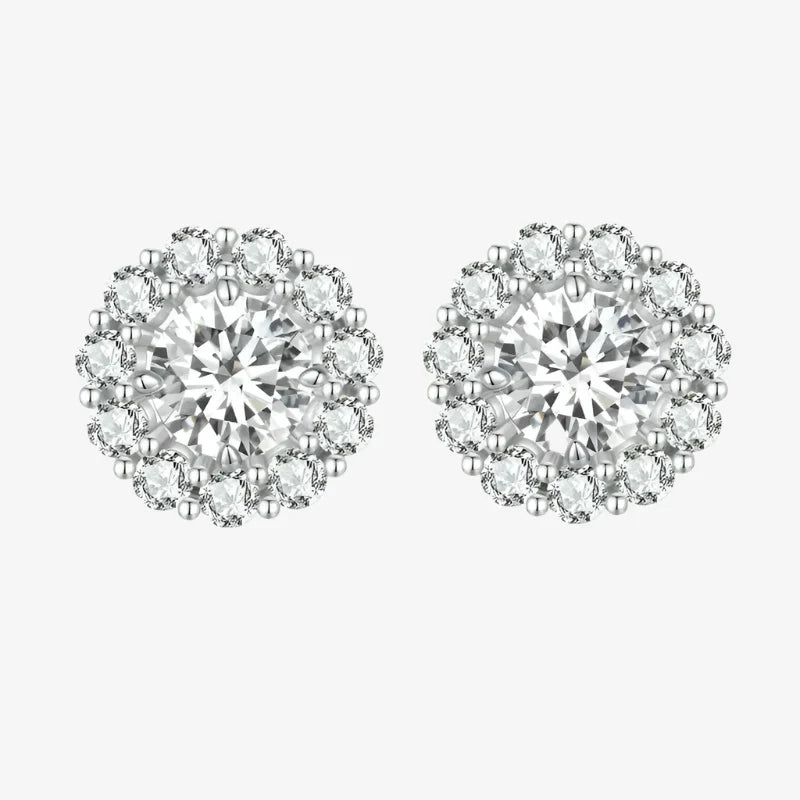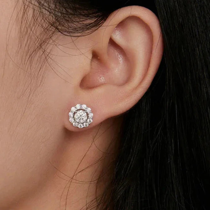 Elevate your elegance with the Sparkling Moissanite Halo Stud Earrings, featuring a captivating design that combines the brilliance of multiple sparkling stones surrounding a radiant moissanite at the center. These earrings offer a perfect balance of classic beauty and modern allure, making them an ideal accessory for both special occasions and everyday sophistication.