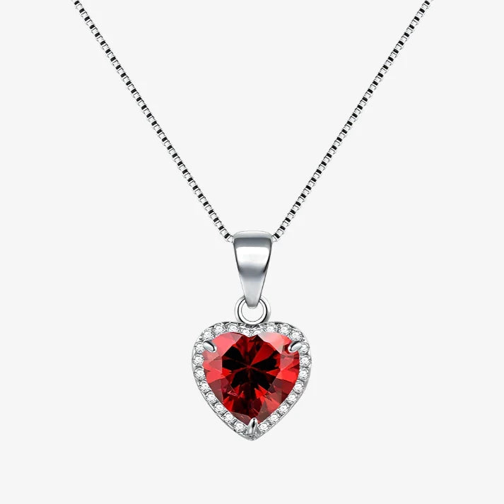 Celebrate love and passion with our Sparkling Ruby Heart Necklace, a romantic piece. Crafted in sterling silver, this necklace features a stunning heart-shaped pendant adorned with a vibrant red stone that captures the essence of affection. Its elegant design makes it perfect for both everyday wear and special occasions, adding a touch of warmth and allure to any outfit. Whether as a heartfelt gift or a personal treasure, this necklace is a timeless expression of love and beauty.