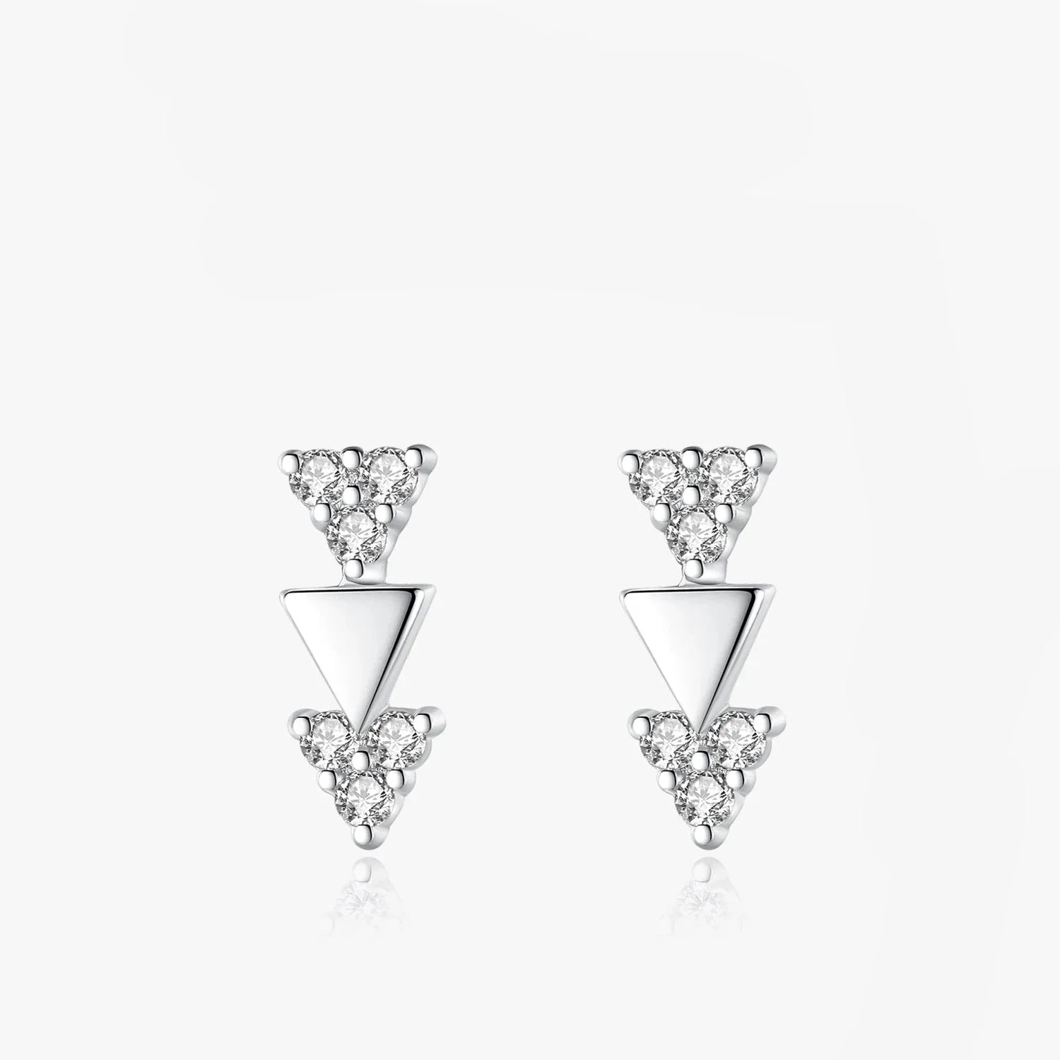 Discover the elegance of the Triangle Sparkle Earrings, featuring a striking design composed of three distinct triangles. The first and third triangles are adorned with a stunning pavé of brilliant stones, while the central triangle showcases a sleek, unadorned silver finish. This captivating combination creates a harmonious balance between sparkle and sophistication, making these earrings a versatile accessory for any occasion.